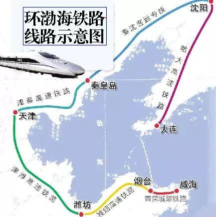 规划中的环渤海高铁由哈大高速铁路(大连�D沈阳段)、秦沈客运专线(沈阳�D秦皇岛段)、津秦高速铁路(秦皇岛�D天津段)山东旅游网、津潍高速铁路(天津�D潍坊段)、潍烟高速铁路(潍坊�D烟台段)、青荣城际铁路(烟台�D威海�D青岛段)组成。其中,哈大、秦沈(已并入京哈铁路)、津秦高铁等段早已建成通车,大连到营口、秦皇岛、唐山、天津滨海新区,已经有高铁和动车开行,青荣城际铁路也已开通运行。