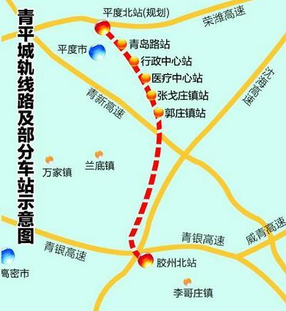 青平城轨将与青岛地铁8号线在胶州北站对接,可直接进入青岛市地铁网,此外还预留了平度到莱州的延长线。