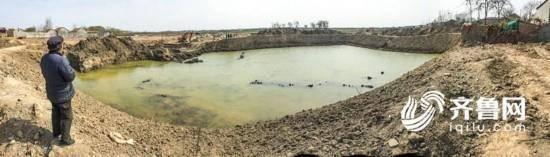 在临邑县孟寺镇枣园村,一个400米操场大小,五六米深的“大坑”,被黄白相间的警戒线围了起来。远远地,记者看到一辆挖掘机和一辆警车停放在警戒线旁边,有几名烟台长岛渔家乐村民越过警戒线想到近一些的地方,均被现场民警鸣笛警告。据村民说,墓穴被发现后,现场就被封闭起来,有民警24小时值守,保护古墓的安全。