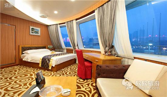 游轮内部的豪华客房,给人家一般的闲适与长岛旅游温馨。不过,这里最适合的还是情侣们谈情说爱。在碧海蓝天、海风吹拂的清晨,推开窗门,面朝大海,这时候最适合恋人相拥感受清晨的美好时光。还可以在观光甲板闲聊浅坐,聊聊心事,听海浪拍打船舶的声音,仿佛述说着它所看到的一切。或随船海上观光游览,领略青岛的碧海蓝天,感受别样的青岛全貌。闷了还可以在附近的酒吧,咖啡屋及精品店小酌或闲逛,也是极好的选择。