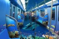 青岛地铁有一辆以海底世界为主题的列车。车厢以大海蓝色为主色调,里面随处可见各种海洋生物的3D彩绘,立体逼真。 在青岛,没坐过这趟主题车厢,都不好意思说在青岛坐过地铁。 童话变成现实 小女孩实现六一心愿