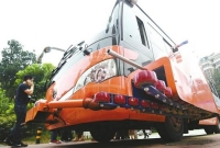 昨日山东首台“拉链车”亮相济南旅游路 自动设置潮汐