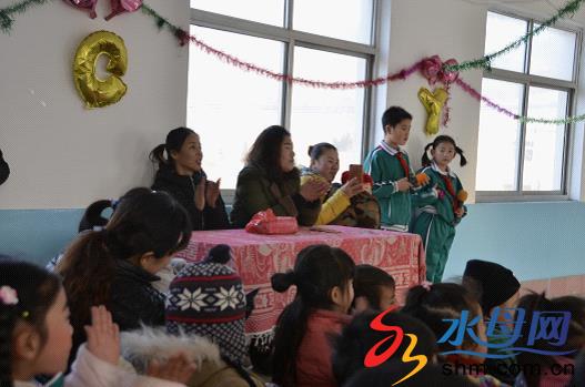 下午一节课之后,二楼礼堂上进行了精彩的节目汇演。肖校长向全校师生发表了热情洋溢的讲话,给全校师生送上美好的祝愿。家长委员会的成员们也到场与全校师生共同庆祝新年的到来,长岛渔家乐还给孩子们带来了苹果、橘子和糖果。