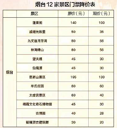 烟台共有12家景区降价