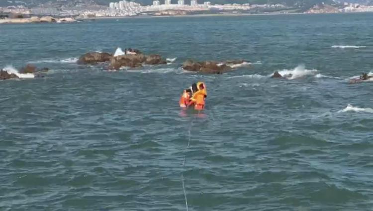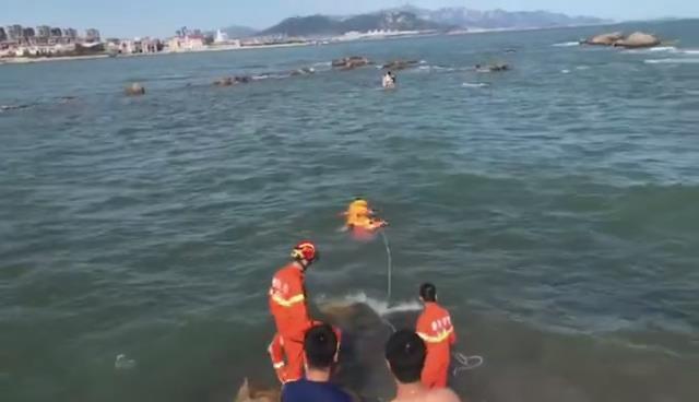 据现场参与救长岛渔家乐援的消防员介绍,到场后发现三名女游客被困在离岸边约60米左右的礁石上,此时水位已经到达膝盖左右,情况紧急,中队立即展开救援。中队指挥员指派一名水性较好的指战员穿上救生衣,携带水域救援专用救生衣,身上系上安全绳,游至被困游客附近,将救生衣为被困人员穿上,岸上指战员合力将被困人员拉回岸边,经过20多分钟的紧张救援,成功将3名被困人员营救上岸。