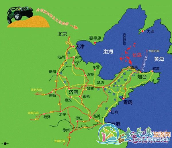 长岛——其他岛屿(庙岛、大黑山岛、小黑山岛、砣矶岛、大钦岛、小钦岛、南隍城岛、北隍城岛),每天有固定航班往来这些岛屿之间。