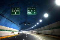 济南首个隧道公交车道现身 悬挂“公交专用”交通指示